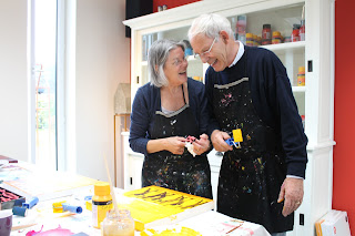 Er vond gisteren in ons atelier een feestelijke ontmoeting plaats. Familie en vrienden van Coby en Anco vierden dat ze samen 140 jaar zijn. Samen schilderen, samen heerlijk lunchen en aan het eind van de dag een borrel en een hapje.